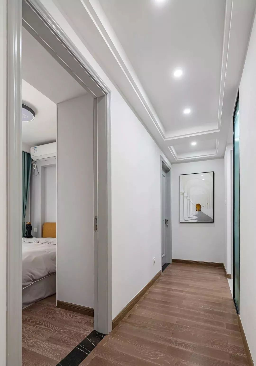 房利通卫生间干区外移,并采用长虹玻璃与过道隔开,不影响过道的通透感,而且质感又美观。铭诚装饰