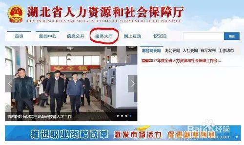 登录湖北省人力资源与社会保障厅官方网站,选择服务大厅。