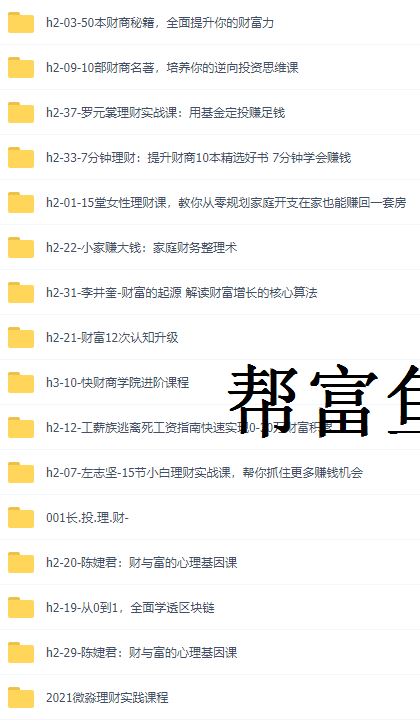 最近发现了一个网站,名字叫帮富鱼,网站有最新的投资理财课程,理财、股票、基金、房产、黄金、比特币都有,觉得挺适合想要学投资理财的新手,才推荐给大家。网址是www.bangfuyu.com