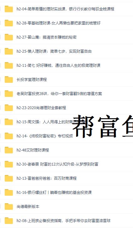 帮富鱼是专注于投资理财课程的网站,课程涵盖市面上绝大部分的理财课程,全面且专注。跟商学院的理财课相比,价格便宜很多,跟一般的网站相比,又全面得多。 家庭理财知识