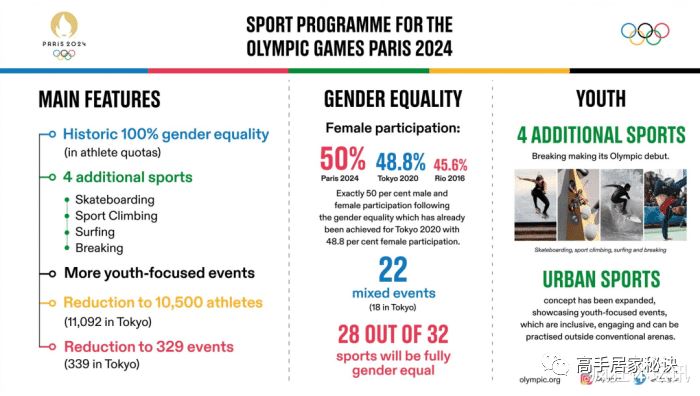 东京奥运会已经落下帷幕,下一届奥运会将在3年后的法国巴黎举行,巴黎奥运会的特点是精简办赛、性别平等和关注年轻人的需求,因此巴黎奥运会参赛运动员的名额从东京奥运会的11092人减少到10500人,男女参赛比例各占50%,然而除此之外,相比于东京奥运会,2024年的巴黎奥运也确定下来会在多个项目中做出变动。