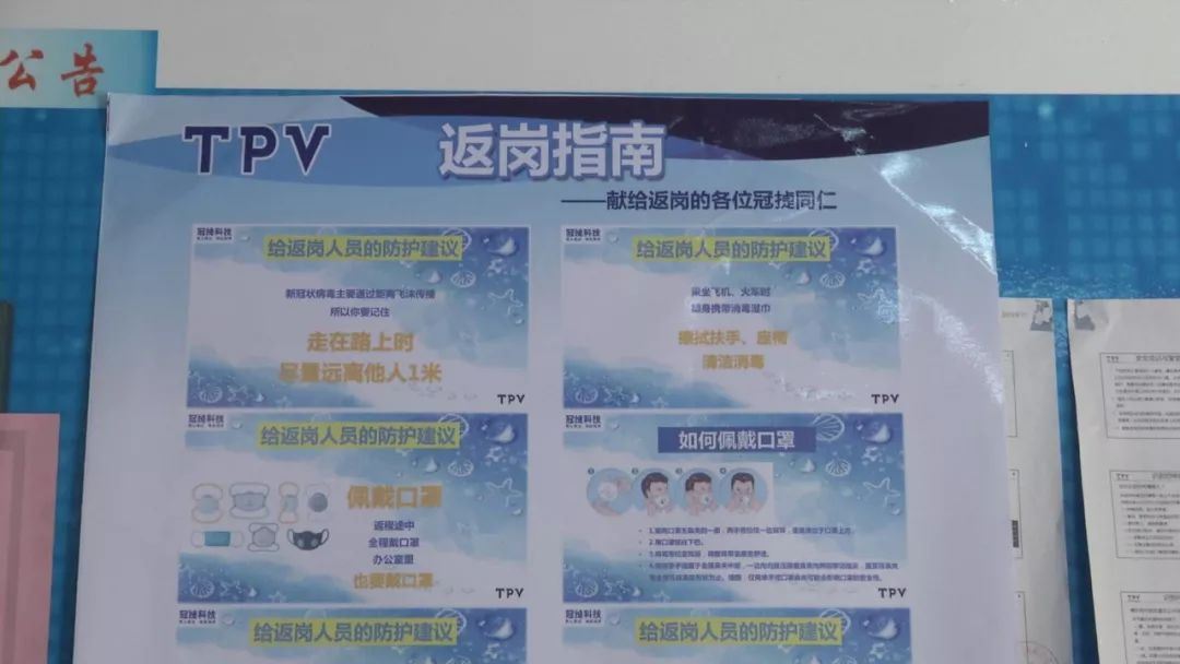 上午8点半,在宸鸿科技厂区门口,工人们正排队检测体陌陌塞班温,有序进入厂区。春节期间宸鸿科技早早制定并落实好防疫工作,不仅每天在办公室、车间更衣室、电梯等重点公共区域进行消杀,还在员工管理系统里新增防疫工作的内容,做到实时掌控员工的行踪、体温等信息。中午饭点,记者来到员工食堂,发现这里的桌椅全部贴上了纸皮挡板,员工们都自觉地隔桌而坐,摘下口罩安静就餐。
