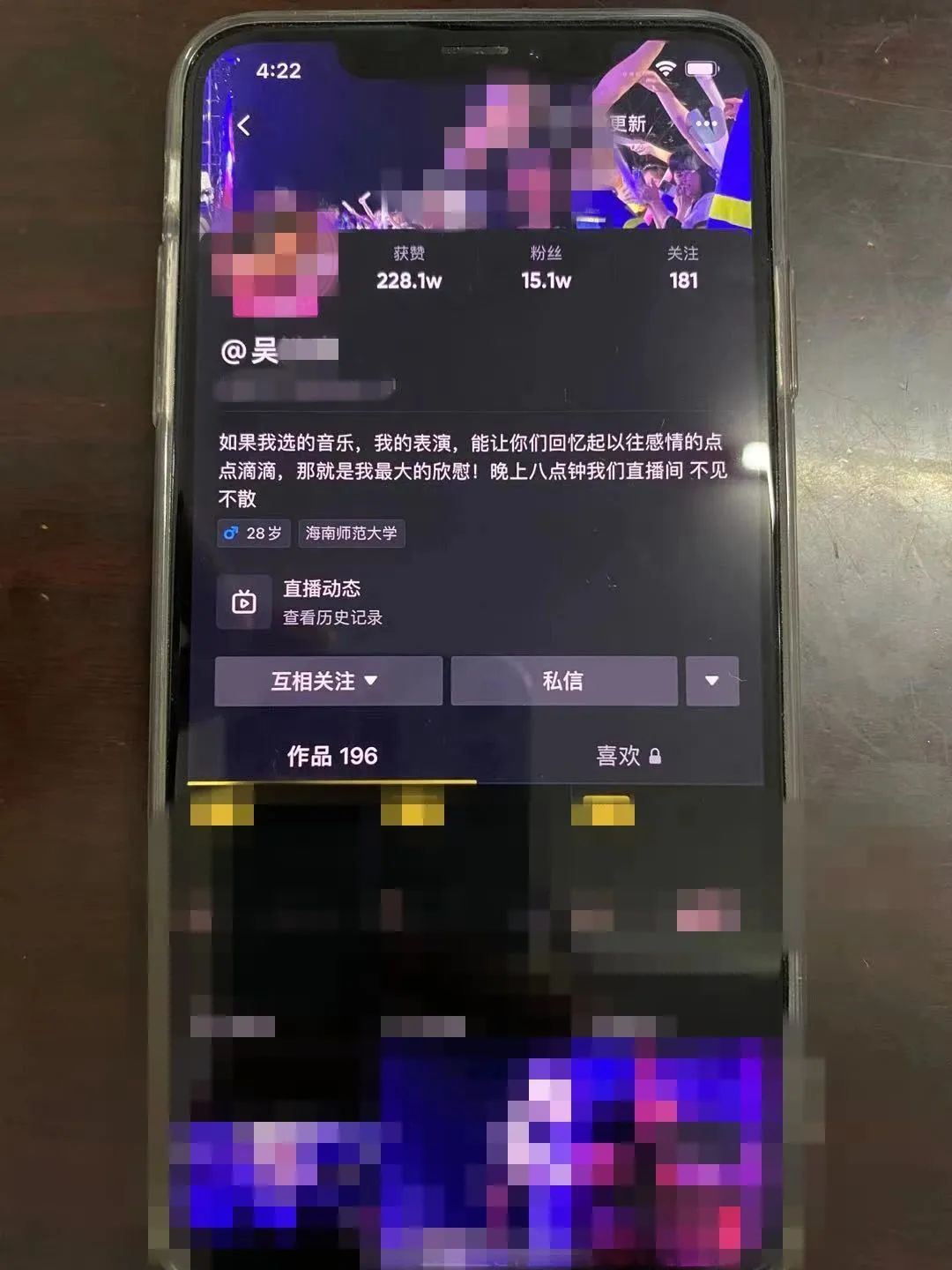 出于好奇,阿花点开了对方头像,见该账户作品一栏全是吴某作品,且简介里赫然写着“本号不关注,谢谢”,这让阿花对“该账号是吴某小号”这一点深信不疑。