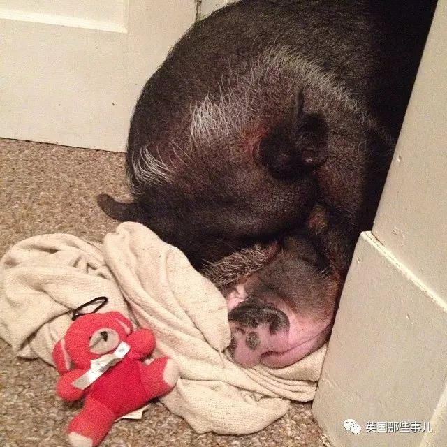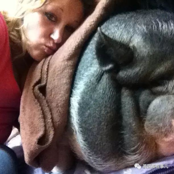 除了从小长大的Bacon之外,她甚至还从别人手中收养了一只因为越长越大而被抛弃的猪猪。
