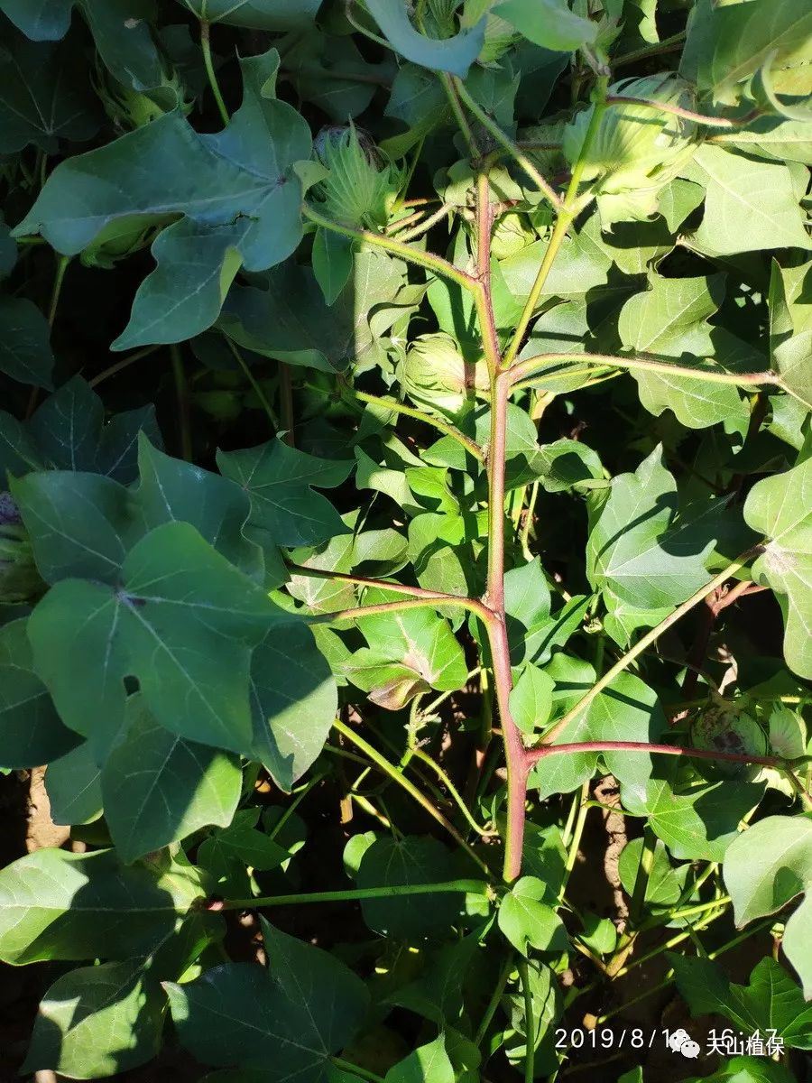部分棉田发现双桃比例大,应该是温度好,7-8月利于成桃。但是部分棉田过早滴施或喷施烯效唑,或施的遍数过多,加之高温影响,棉株成桃过于集中,而造成头重脚轻以致棉株倒伏。