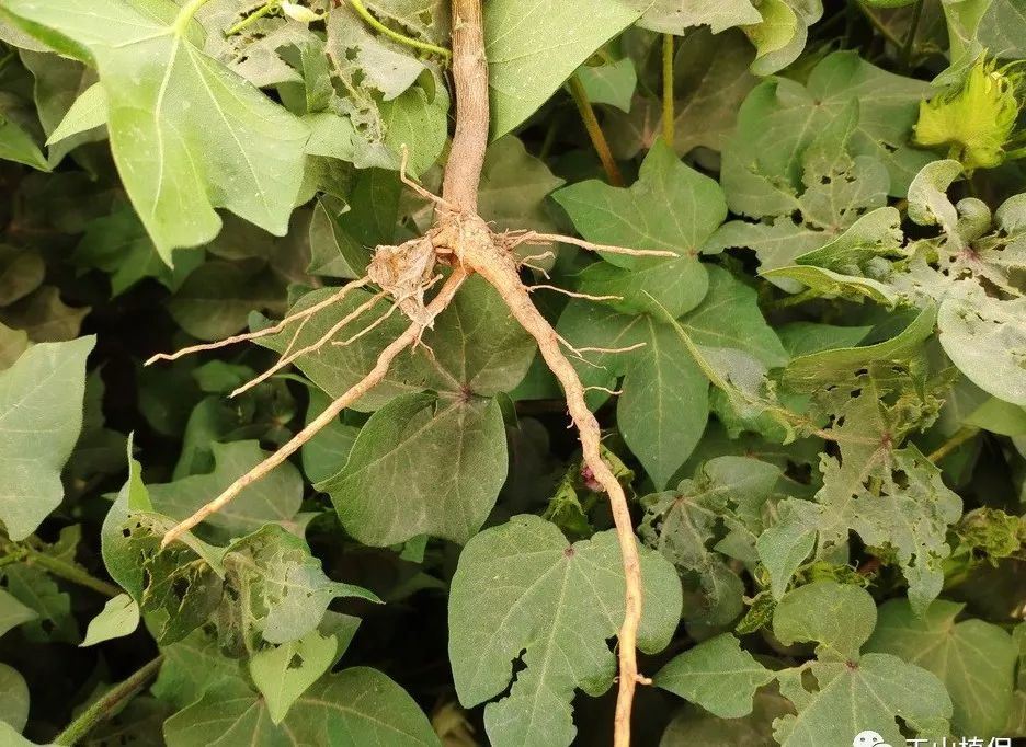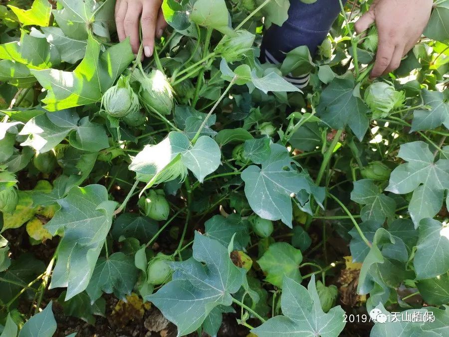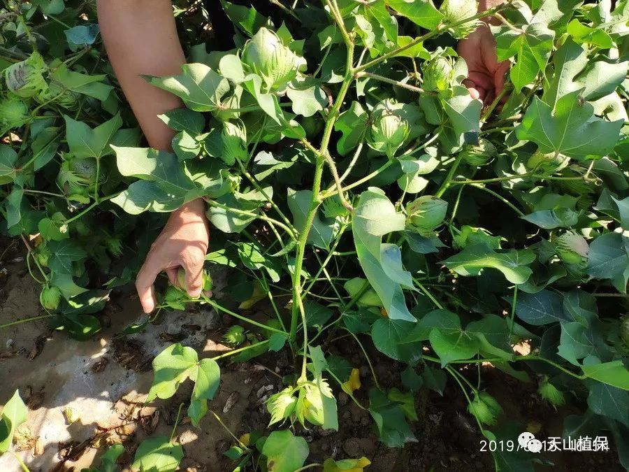 由于7月至8月温度高,气候适宜,利于棉花上桃快,水肥不缺,棉桃长的大,尤其是中上部棉铃长的好,即为头重;5月至6月份温度偏低,阴雨天气多,不利于花芽分化,始果节位高,多数棉田始果枝在30厘米以上,腿比较高,即使下部叶枝成桃也好,但腿还是比较高,部分棉田进头水较早,棉株扎根浅,主根分叉,根浅即为脚轻。头重脚轻而致棉株倒伏,天山植保较为认同,这应该是今年棉田倒伏的主要原因。