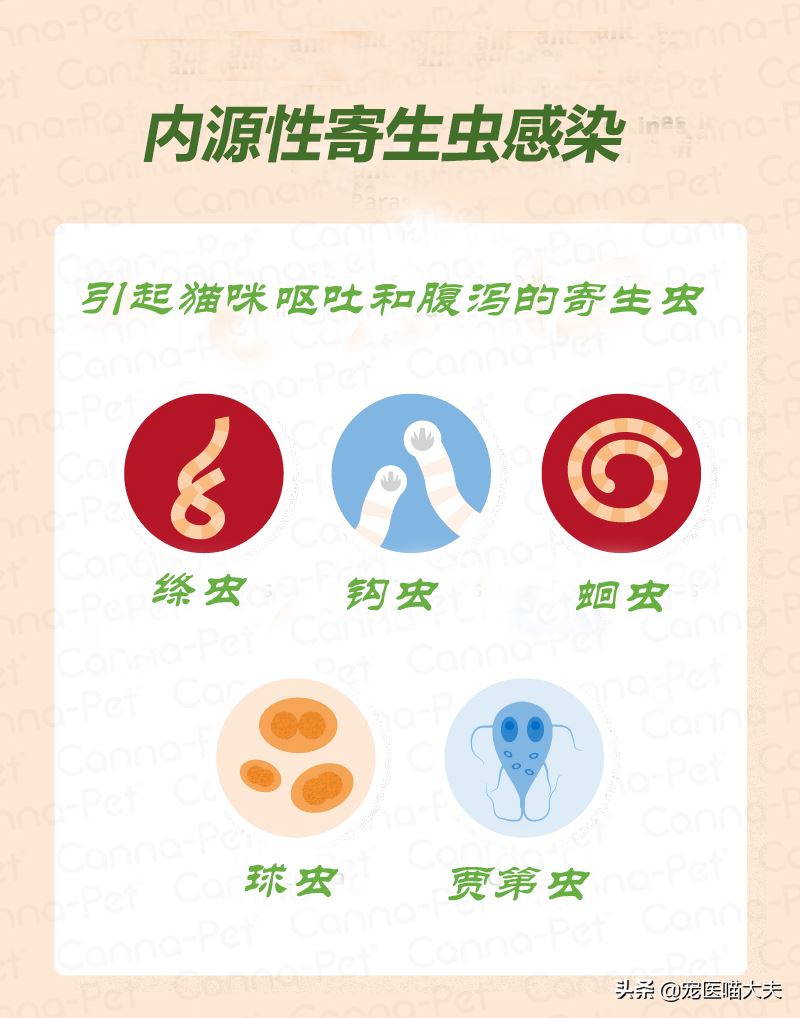 肠道寄生虫也会导致猫的呕吐和腹泻的原因之一。因为肠道中的寄生虫刺激了猫的胃肠道,当猫发生的粉刺发生时,呕吐和腹泻。可以在其粪便中看到明显的寄生虫或寄生卵。