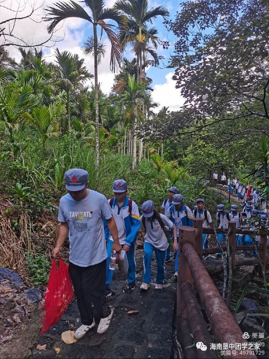 伴着昨夜的美梦,迎着舒爽的晨风,2021年7月9日,海南省农垦中学青年马克思主义者培养工程(以下简称青马工程)学员带着美好的渴望,为了心中理想,在暑假第一天早早地起床,参加由学校大力支持的走进母瑞山红色励志研学活动。 在两个多小时的舟车劳顿后,青马工程学员及老师一行到达海南“井冈山”——位于海南省定安县的母瑞山革命根据地纪念园。