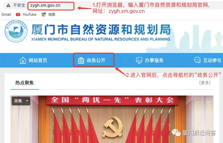 步骤一:电脑打开浏览器,输入厦门市自然资源和规划局官网,网址:zygh.xm.gov.cn(也可以百度搜索“厦门市自然资源和规划局官网”进入)。