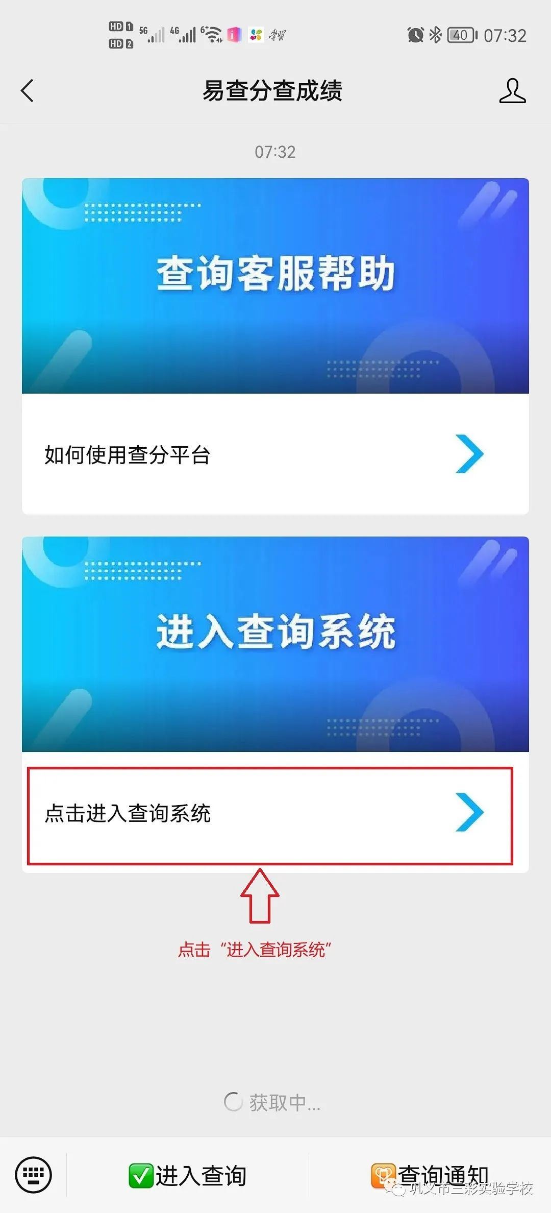 4.点击中间“进入查询系统”。