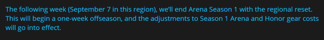 北京时间9月8日,国服竞技场S1赛季结束,之后将开始为期一周的竞技场休赛期,玩家可以购买到有折扣的第一赛季PVP装备。