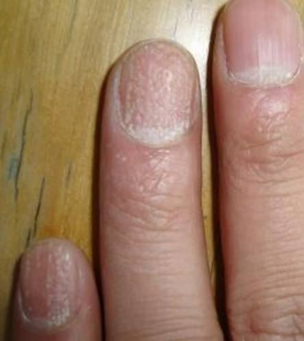 有些疾病也会导致指甲从甲床剥脱分离,剥脱的指甲常常发白、黄、绿不等,不透明。