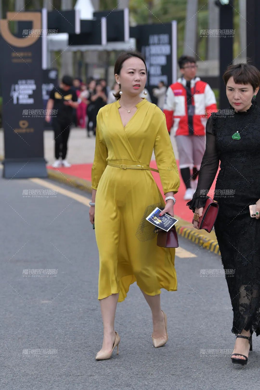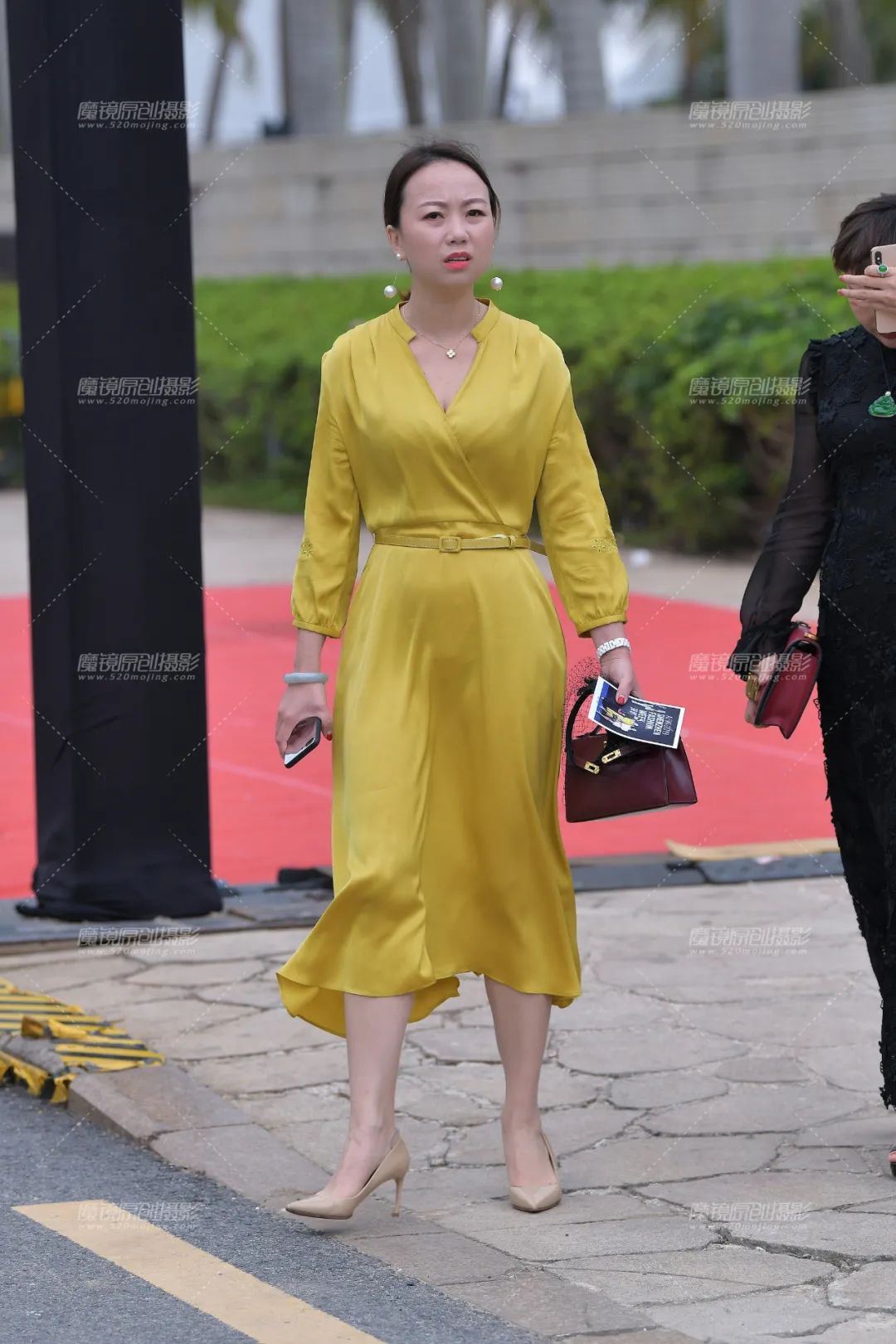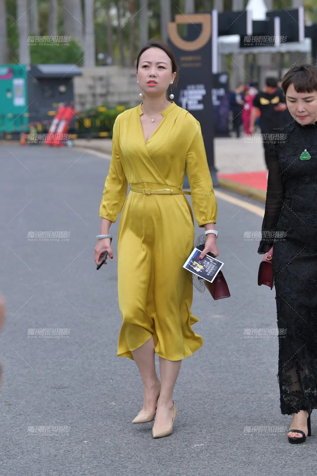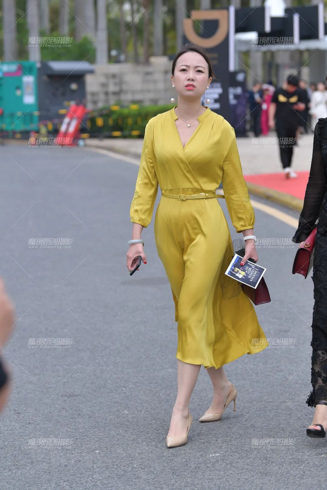 虽说是可以省去下装的搭配,但是鞋子可不能省去,在这里如果存在有搭配休闲鞋想法的人,那我可以毫不犹豫的告诉你该反省一下自己的衣品了,很明显这种风格的吊带长裙只能去搭配高跟鞋了,也只有高跟鞋的女人味和优雅才能驾驭它。姑娘搭配的很小心,她选择了一款百搭款式的白色高跟鞋,其实不能说这款鞋子的造型不好,但在这条裙子面前就显得有点太简单了,要是黑色款式应该可以让效果更好一些的,白色会在气质方面显得会弱一些吧,大家认为呢?