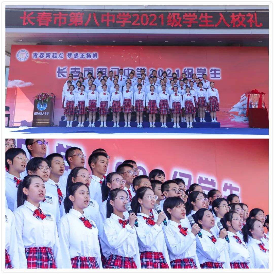 入校礼第八项:师生合唱校歌《八中——梦想开始的地方》。