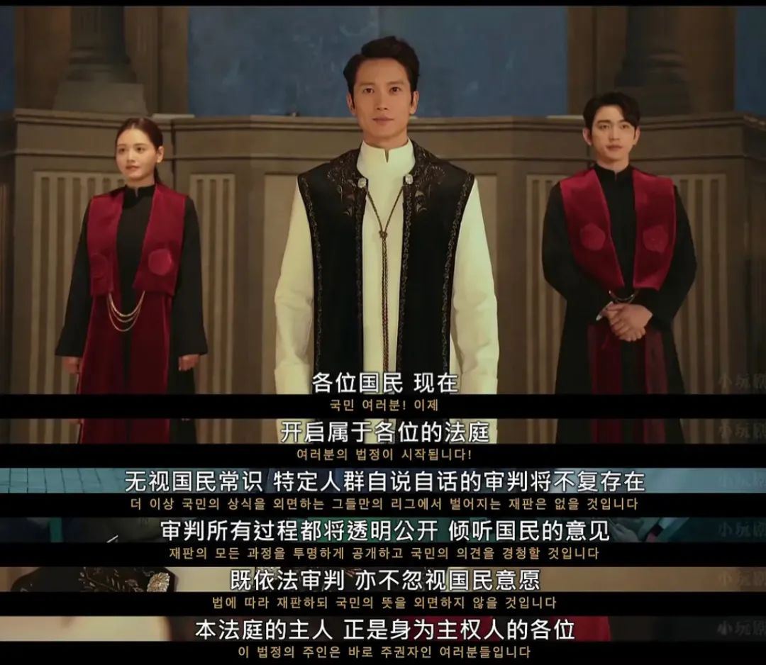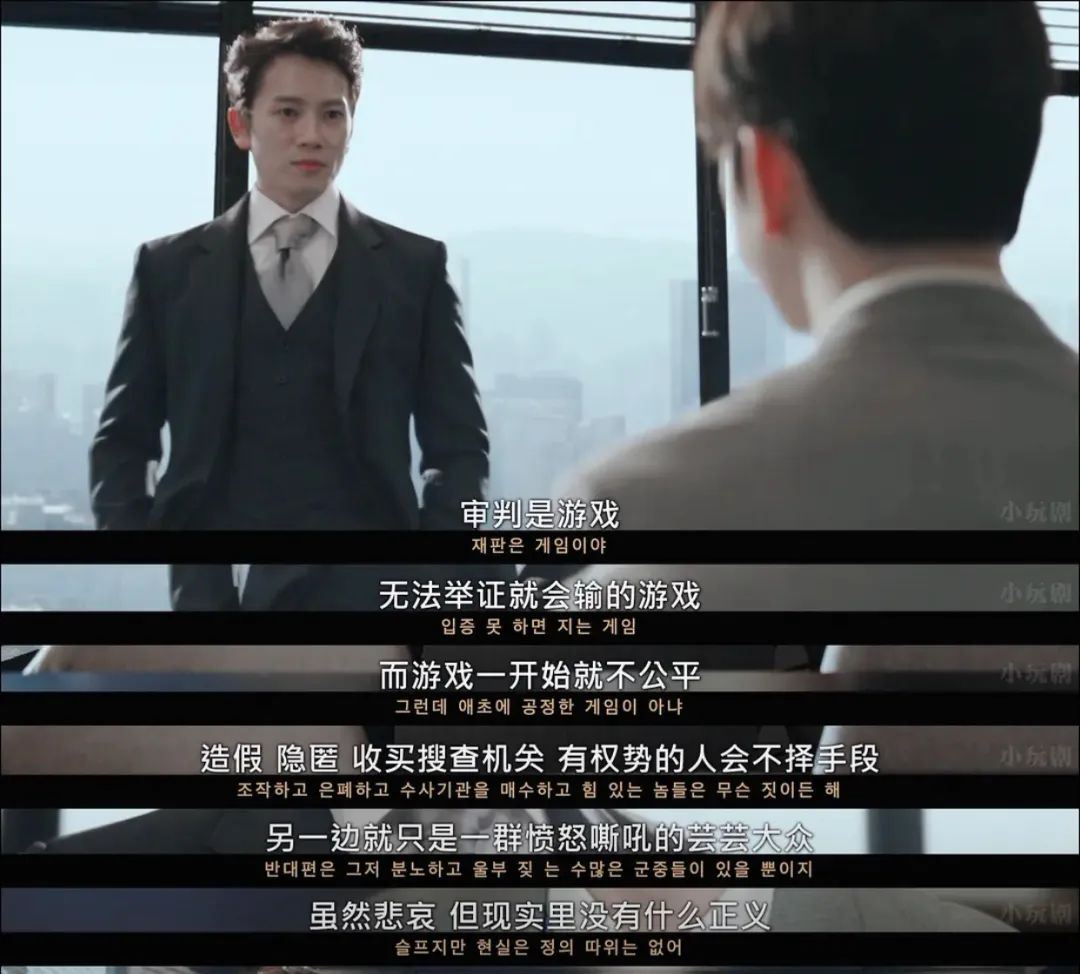 来源:娱乐拆穿姐( ID:yulechaichuanjie)没想到,吴某凡的故事,人家不但拍了,判罚方式还特别大快人心。但男一男二非常好磕,演技在线,身材在线,摄影构图和BGM审美在线。经济?;?,民众失业,仇富煽动纵火恐袭,韩国国内外矛盾加剧,最终酿成“光化门暴动”。而另一边,财阀、法务总长、传媒巨头和以“直播治国”的浮夸总统却沆瀣一气,过着奢华的生活。为了更好地控制舆论,制造为国为民的假象,演员出身的总统推出了不走常规路的“示范法庭”。他不断突破底线,违法程序正义,一边与权贵阶层做斗争刘洋牧师,一边也从不标榜自身正义,反而自认“我就是深渊”。朴珍荣饰演的小白兔陪审法官金佳温,父母因被人诈骗惨死,而他始终心怀正义。受命去耀汉身边“潜伏”,挖出他犯罪的证据,却不由自主向“恶魔法官”靠拢。第三个示范法庭的案例,让人拍案叫绝——简直就是吴某凡的翻版。韩流巨星被起诉性侵,该巨星却觉得是那些女人想上位。检察官提出对巨星进行“物理阉割”。民众也投票判巨星有罪。我的古怪高中2但如果他真的判对其进行物理阉割,那恐怕将来也会被舆论反噬。只判处有期徒刑,但把巨星丢到全部都是性犯罪者的监狱里去。还有欺诈犯逃脱服刑(与最近的《扫黑风暴》孙兴异曲同工)……编剧文宥硕,毕业于哈佛大学法学院,前首尔中央地方法院副法官。2018年,文作家还写了《汉谟拉比小姐》。艺术来源于生活,剧中太多台词都充满了讽刺意味,残酷、真实、切中要害。财阀出事的时候,只要爆出几个大的艺人绯闻就能转移公众的注意力。而耀汉和佳温的日常,就是一个彼此追逐和靠近的过程。总结来说,这部剧男二拿了女主剧本,女一拿了反一剧本。佳温因为长得像耀汉的白月光哥哥而被选中,谁知两人除了皮相之外,善良的灵魂也如出一辙。本着调查的目的又正好受伤,佳温顺理成章(不是)住进了耀汉的大别墅开启同居生活。被掐脖子也要留在这里的理由,一定是因为这人有刘海的样子太吸引人。得知了父母惨案的真相幕后,佳温选择站在“恶魔”这一边。说句实话,这部剧在CP塑造上是有点用力过猛的。很多镜头的起承转合,已经不是在给影迷留空间,而几乎是按头磕的程度。大魔王也难得露出了脆弱又悔恨的神情,只能用喝酒来掩饰内心朴珍荣是男团GOT7成员(王嘉尔队友),以前也出演过《蓝色大海的传说》,演少年李敏镐。能和池晟这样的演员大前辈对戏,是受益良多,进步不小的。之前珍荣以为池晟是“恐怖的前辈”,可从片场花絮来看,真的感觉像是很喜欢和小侄子打闹的叔叔呀。往浅里说,让人磕生磕死的耀温CP,本质仍是讨论人与人情感的连接。很多人不满12集后佳温的反复横跳,觉得他究竟是辜负了耀汉的一片真心。那都是在完全代入了耀汉立场后的怒其不争。觉得他是猪队友、拖了耀汉大杀四方的后腿。可即便是耀汉,被误解,被背叛,最后对佳温也是无怨言的作为一个一心向快乐女声nanana善,曾经非常相信法律和体制力量的人,佳温被恶魔吸引,但仍心存疑虑;被现实击碎,但没有一黑到底。与厌世、强大的耀汉相比,像佳温这样善良、纠结的普通人可能才是这个反乌托邦世界最后的希望。“他对这个世界怀疑、愤怒、怜悯、误会,但直到最终,他都没有放弃保留善意“文作家说,无法与人们的愤怒共感的司法系统,不过是机器而已。实现正义的过程中,最重要的从不是正义感,是可能会误判的恐惧感。“以周美青照片自己所相信的正义为基准而愤怒地提高声音呐喊的人们,应该去问问自己,我是否想过自己也存在错判的可能性”阿美想说: