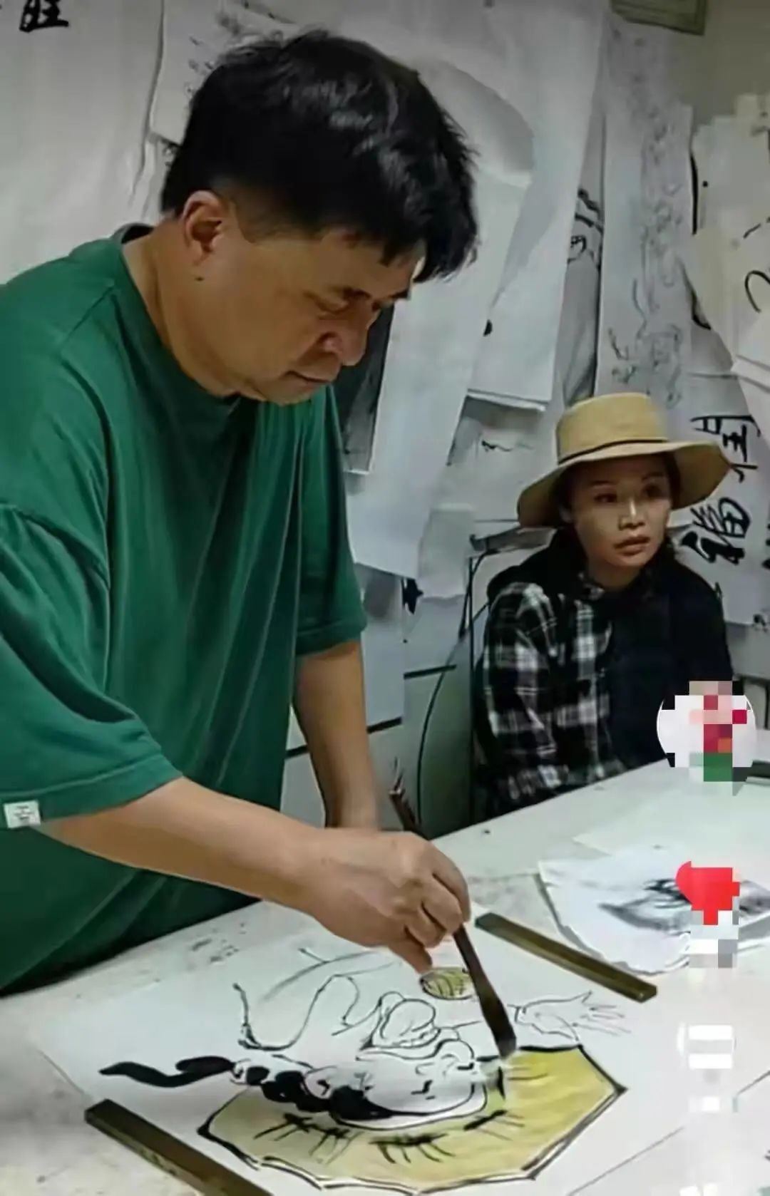他认真地拿着毛笔为草帽姐的动画形象着色,显得非常专业。