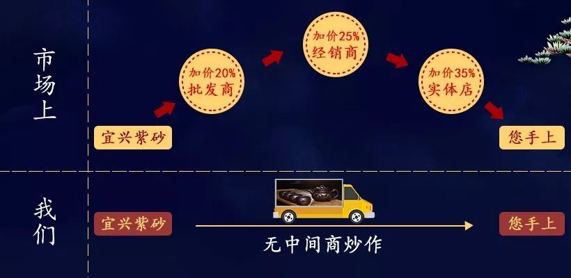 可想而知,实体店从源头到壶友手中需要经过五次交易,中间加价了80%,而【陶趣】直接从源头宜兴将壶送到您的手中,有自己的店铺,保证一手货源,为的就是可以让壶友们了解紫砂壶的同时,可以用一手的价格,拿到心爱的宝贝。