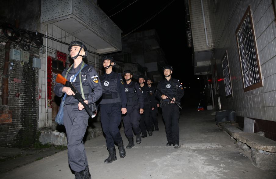 △图为高要警方在金利打掉一个涉黑犯罪团伙。