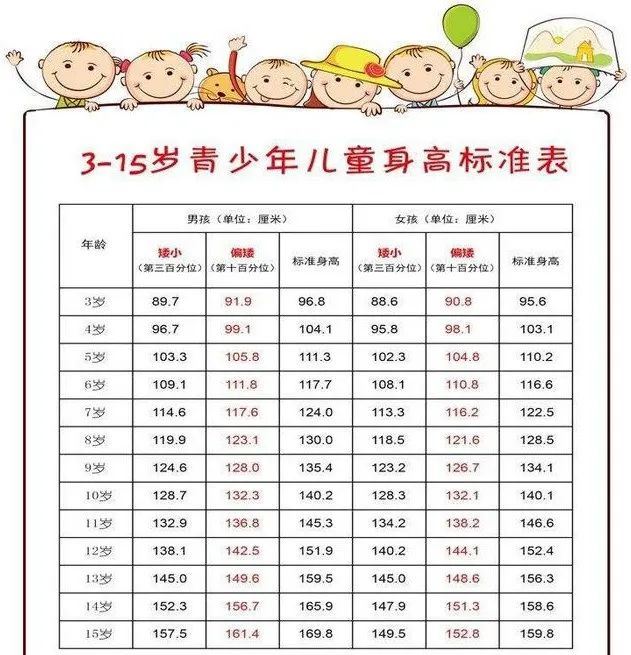 (3-15岁青少年儿童身高标准差数值见下图)
