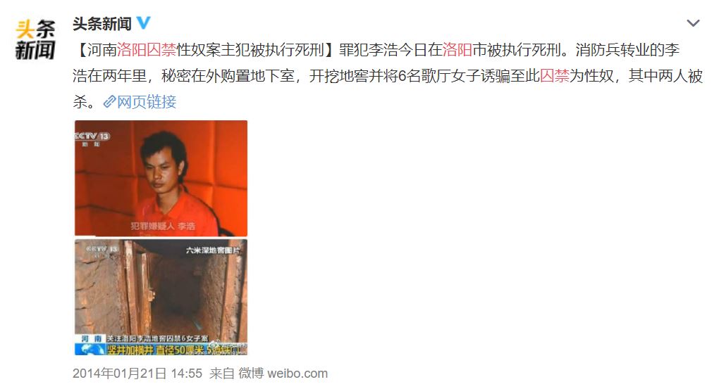 2014年1月21日,一个名叫李浩的罪犯被执行死刑。