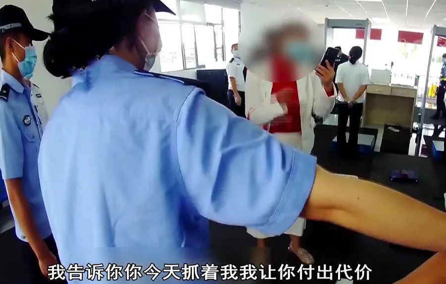 法警一直劝女子配合安检,可这名女子却不依不饶起来,冲着女法警喊道:我告诉你,你今天抓了我,我会让你付出代价,我怕你??!随后,这名女子更是不断威胁女法警,称要让女法警付出代价。由于女子的这种行为,已经扰乱了法院的秩序,法警将女子控制之后,当地派出所迅速出警将女子带回了派出所。