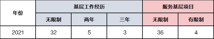 服务基层项目工作经历也是一项不错的优势,每年都有部分岗位面向服务基层项目工作经历的考生开放,这类岗位竞争压力相对较小,通过笔试的几率更大,有此类工作经历的同学一定要把握住机会。