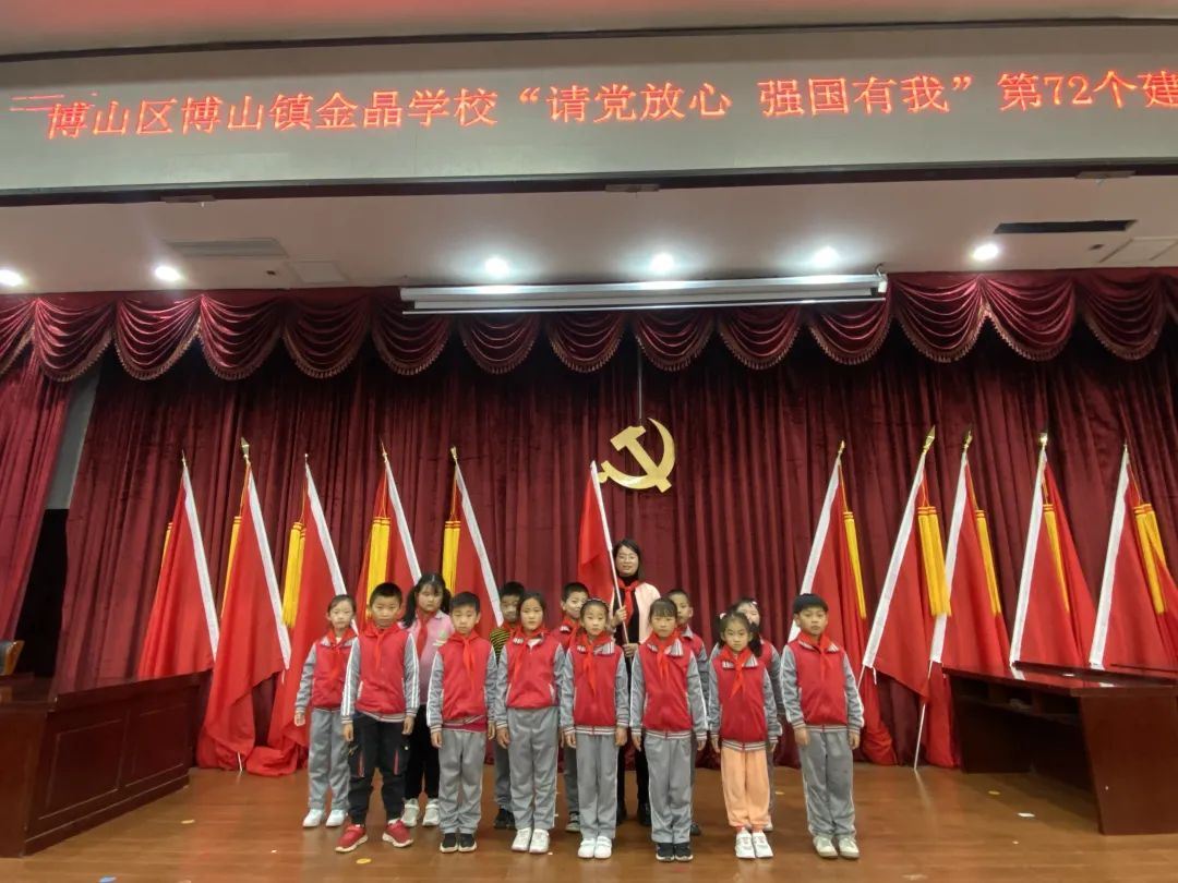 金秋十月,清风送爽,在这喜获丰收的季节中,在这阳光灿烂的日子里,又迎来了中国少年先锋队建队日,这个属于少先队员们的节日。为庆祝中国少年先锋队建队72周年,博山区博山镇金晶学校广泛开展“请党放心·强国有我”庆祝第72个建队节系列活动。