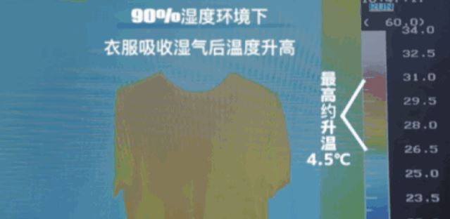 通过热感仪器监测发现:在90%的湿度下,面料吸收湿气温度升高了4.5℃!无论是外界湿冷空气,还是自身运动流的汗,都能成为它的“热力染料”!