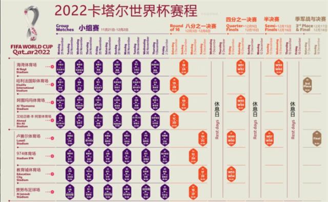 2022年世界杯小组赛时间表