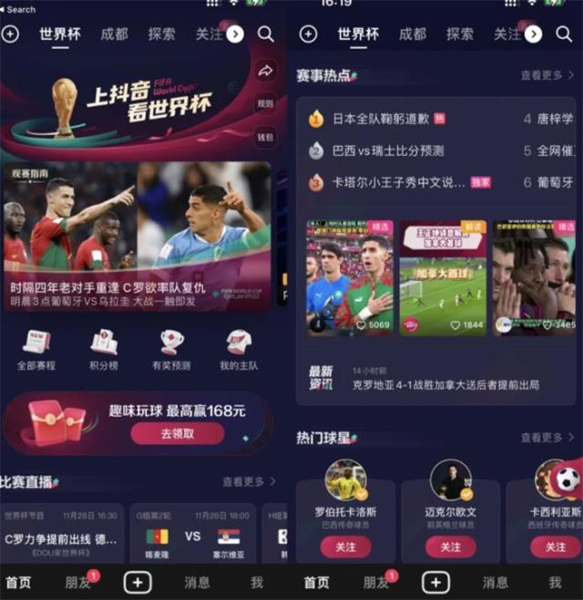 抖音是这一次世界杯赛事的最大黑马选手,抖音是可以允许用户在并不登录账号的情况下,利用4K或者H DR的模式去观看这一次世界杯的赛事,而转码率是这三个平台中最高的一个,在画面观看效果上,甚至比来源央视频还要更为优秀。
