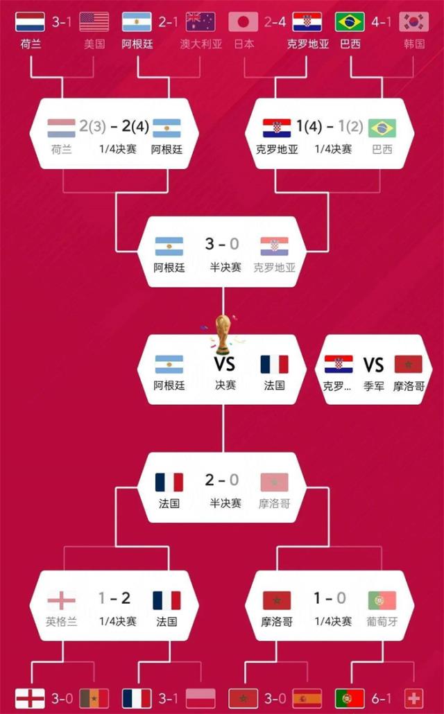 卡塔尔世界杯即将结束。阿根廷半决赛3-0击败克罗地亚,法国2-0击败摩洛哥,阿根廷也将在本届世界杯决赛中进行比赛VS法国!克罗地xuejiazl.org 亚和摩洛哥之间将举行三四场决赛。