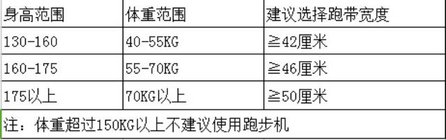 一般很多便宜机器跑带宽度在42厘米,够普通女孩子正常使用,如果自己身高马大类型,那就不能选择跑带过窄的跑步机了,至少需要选择46厘米以上的。这里给大家一个数据参考: