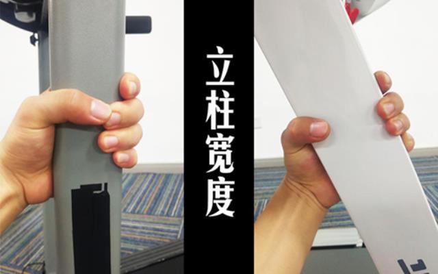 对比两台跑步机的立柱宽度,百元机的立柱我们我一只手正好握得住,而这千元机的立柱一只手无法握起来。在稳定性方面,较细的立柱,会使跑步机的扶手及整机的耐久度、稳定度减分。