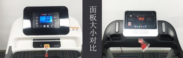 在操作面板方面,两台跑步机的显示屏虽都不是浮夸的彩屏,但是百元机的显示屏只能滚动显示几个运动数据,而且屏幕十分窄小,红色的LED显示屏在视觉感官上效果并不舒适。千元机的显示屏幕上显示完整的各种运动数据,并且蓝光LCD屏看起来更为舒心。