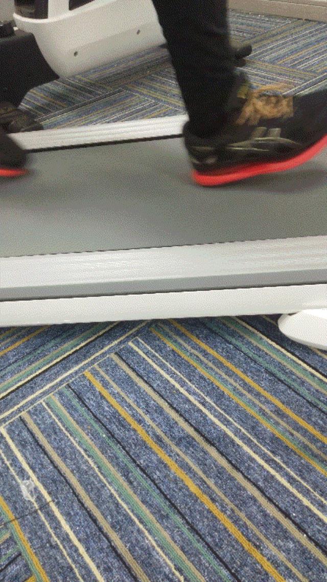 我们我在跑步机上试着左右摇晃了这两台跑步机的扶手,发现黑色这台百元机很轻易的就有大幅度的摇晃,不是很稳定,而千元机并没有很大幅度的摇晃。