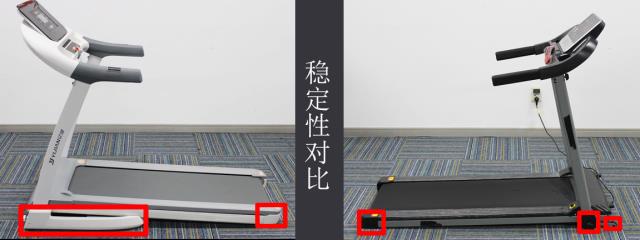 我们我在跑步机上试着左右摇晃了这两台跑步机的扶手,发现黑色这台百元机很轻易的就有大幅度的摇晃,不是很稳定,而千元机并没有很大幅度的摇晃。