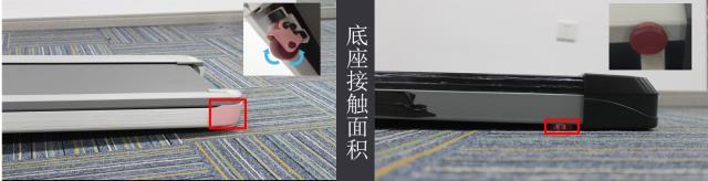 仔细探究一下原因,我们发现,立柱下方支撑点的设计,才是造成机身不稳定的重要原因。这台百元机的立柱下方与地面间有一段小小的距离,说白了就是悬空的,别看这点距离很小,但是很要命,立柱所受的从上至下的力,无法直接传导到地面,就会带动整个跑台侧翻,如果在上面跑步的人一旦重心不稳去扶扶手,整机侧翻的风险较大。