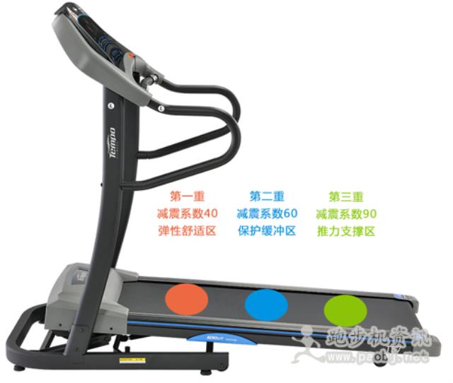 三重弹性避震系统是在跑步机高密度纤维不同跑板位置,安装不同软硬度的避震垫,是按照人体慢跑运动力学原理设计的,并搭配避震垫软硬度,虽然不能完全吸收跑步机跑板对人体产生的冲击力,但我们在上面跑步的时候,还是会感受到良好的运动体验,主要代表有乔山跑步机。