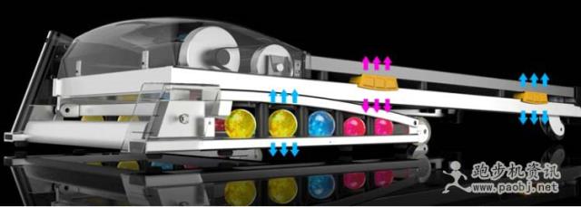 我们在立久佳跑步机品牌上会看到就飞机轮的减震,形状类似飞机的轮子而命名,感觉呵呵。其原理采用油压设计,平均分散受力,延长跑步机寿命,详见下图。