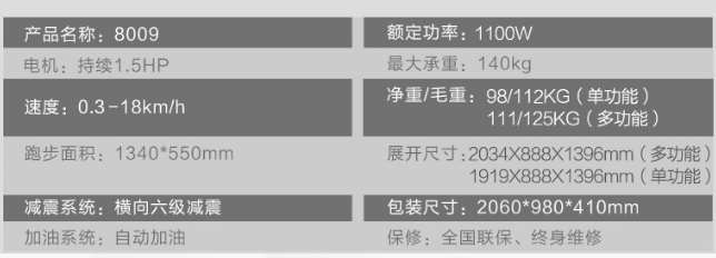 跑步机最年夜承重: 140kg