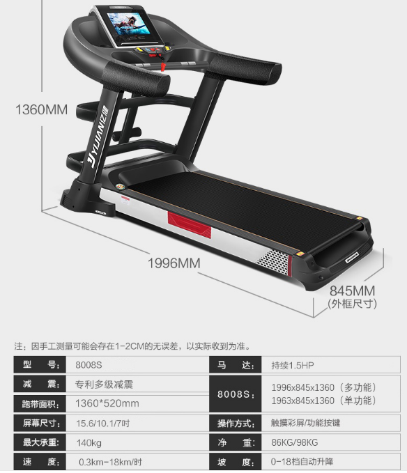 这款亿健跑步机的第一款的初级,第一款由这款进化而来。和第一款比拟,在跑带尺寸、连续马力都类似,然则价钱相对廉价,合适给体重不是很胖,在家重要健身的人群应用。