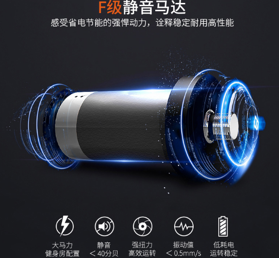 4、开创马达后盖散热装配:马达仓有散热格栅,有助于产物在连续应用时进行散热保护,确保马达机能稳固和保险 。该散热装配在舒华家用产物中属于开创。