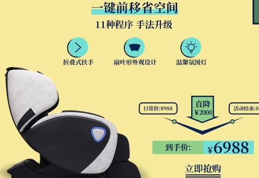 尚铭按摩椅是这几年才鼓起的,在天猫中销量排名居首,以亲平易近的价钱、高机能设置装备摆设著称,获得用户的承认。