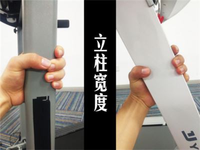 接下来对比立柱宽度,如果跑步机的立柱较细,会使跑步机的扶手及整机的耐久度、稳定度减分。如图可以看当百元机的立柱我一只手就能轻松握住,而这千元机的立柱一只手无法握起来。在稳定性方面,