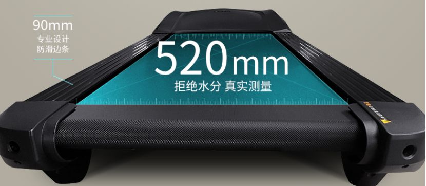 这里提醒一下,跑带宽度和跑台宽度是不一样的。同时我也建议要购入带扶手的跑步机必须考虑更宽的跑带,因为跑步会伴随甩臂等动作。不仅是跑带宽度,跑带长度也需要考虑进来,面积过小会让人跑步畏畏缩缩的,跑不畅快。