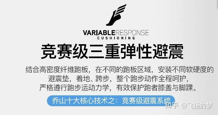乔山的减震系统可是,竞赛级别的减震系统,是属于三重减震。根据你跑步落脚的时候,先是脚跟落地,然后脚掌落地,最后发力跑出第二步。就这样根据三个的阶段,采取不同的减震级别。先是轻度的减震,让脚跟落地时候,有一个不错的舒适度,然后中度的减震,对于整个脚掌落地感非常回弹,最后发力跑第二步的时候,又给出一个很好地力度,让你持续的跑下去。