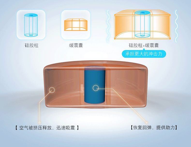 目前市面上常见的减震方式主要有四种,分别是:硅胶减震,气囊减震,弹簧减震和复合减震。
