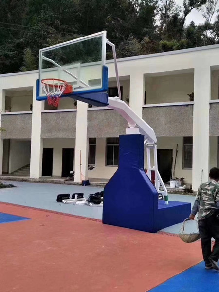 秦皇岛豪华型电动遥控液压篮球架安装完成