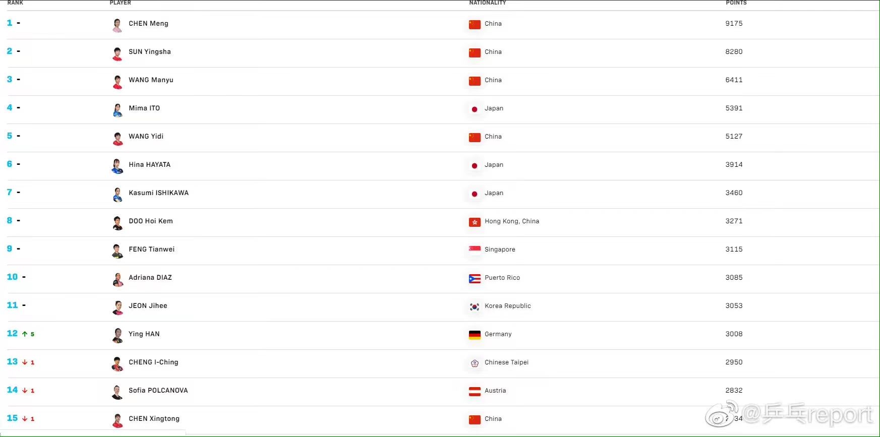 // 世界排名|樊振东陈梦继续领跑单打积分榜 阿鲁纳上升至 //