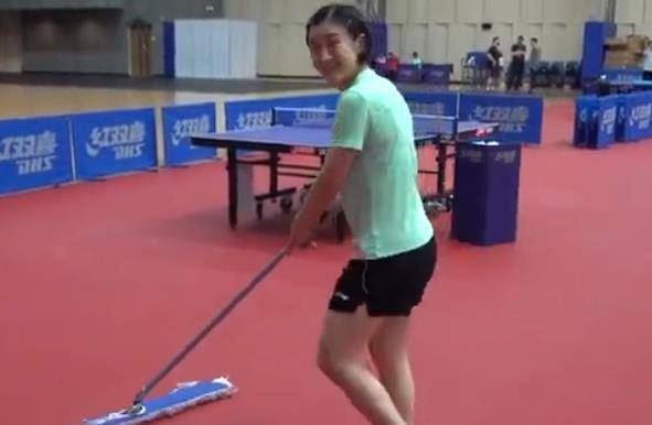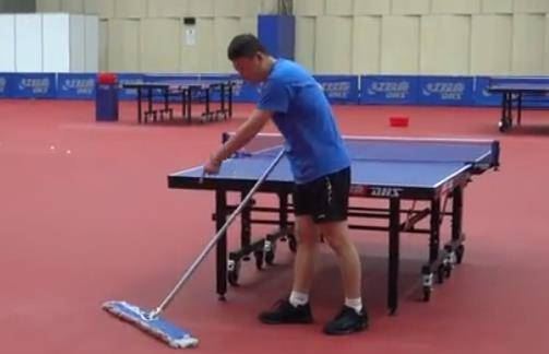 虽然男运动员们没有上场拖地,但女队的男教练们却没有享受这个待遇——奥运冠军马琳就一边打扫卫生,一边嘟嘟道:“一堆的头发!”